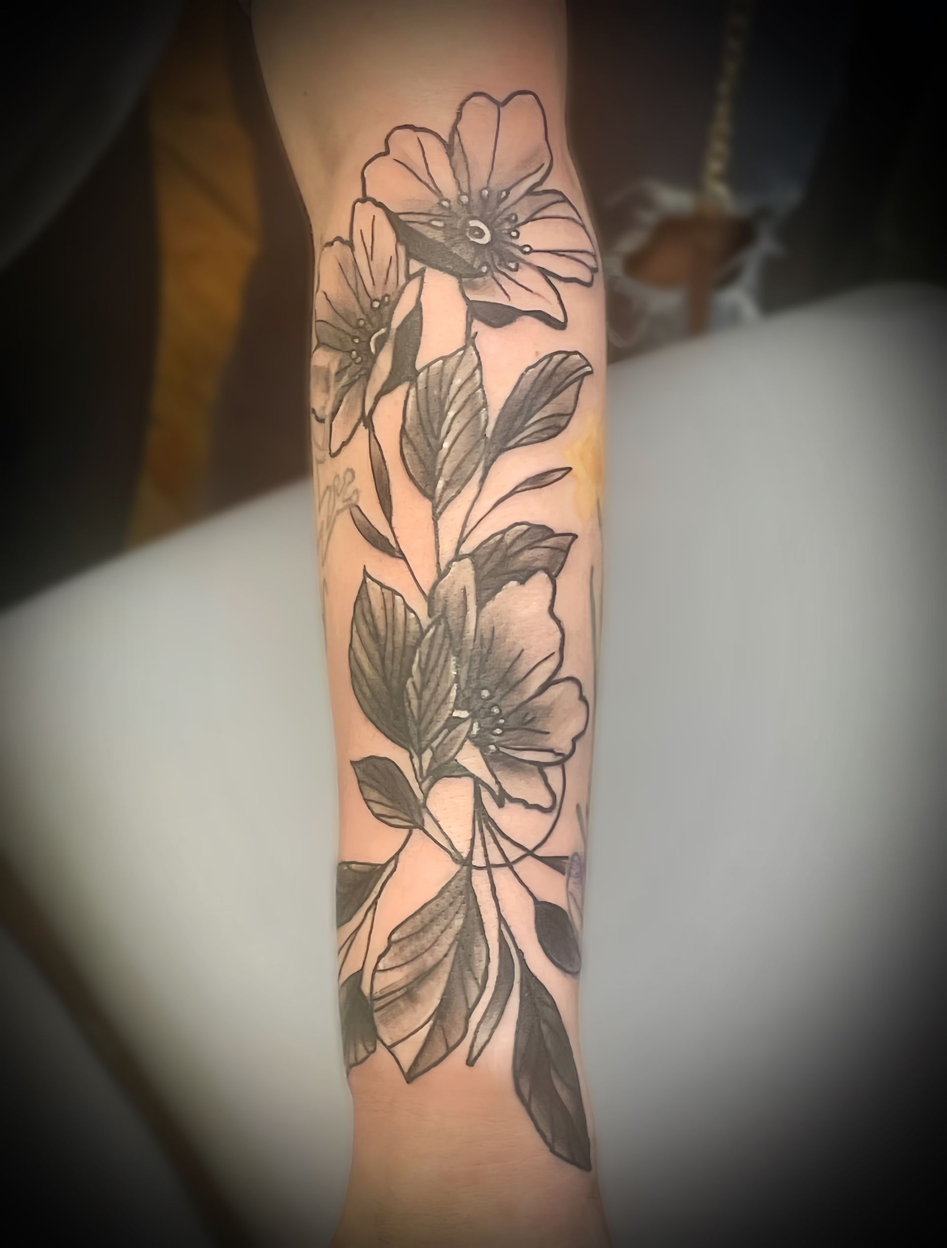 Adrianna is also a fabulous tattoo artist that I had gotten tattoo work with most recently, I came in to get a consolation of a tattoo cover up. She took a look at what I wanted to cover and off the bat she had quite a few ideas and was happy to work with the tattoo style I wanted too. Also was very sweet and worked within my budget for some fantastic work. We came to a conclusion of what I wanted tattooed and she did amazing the line work and style is all I could’ve hoped for and it came out spectacular.