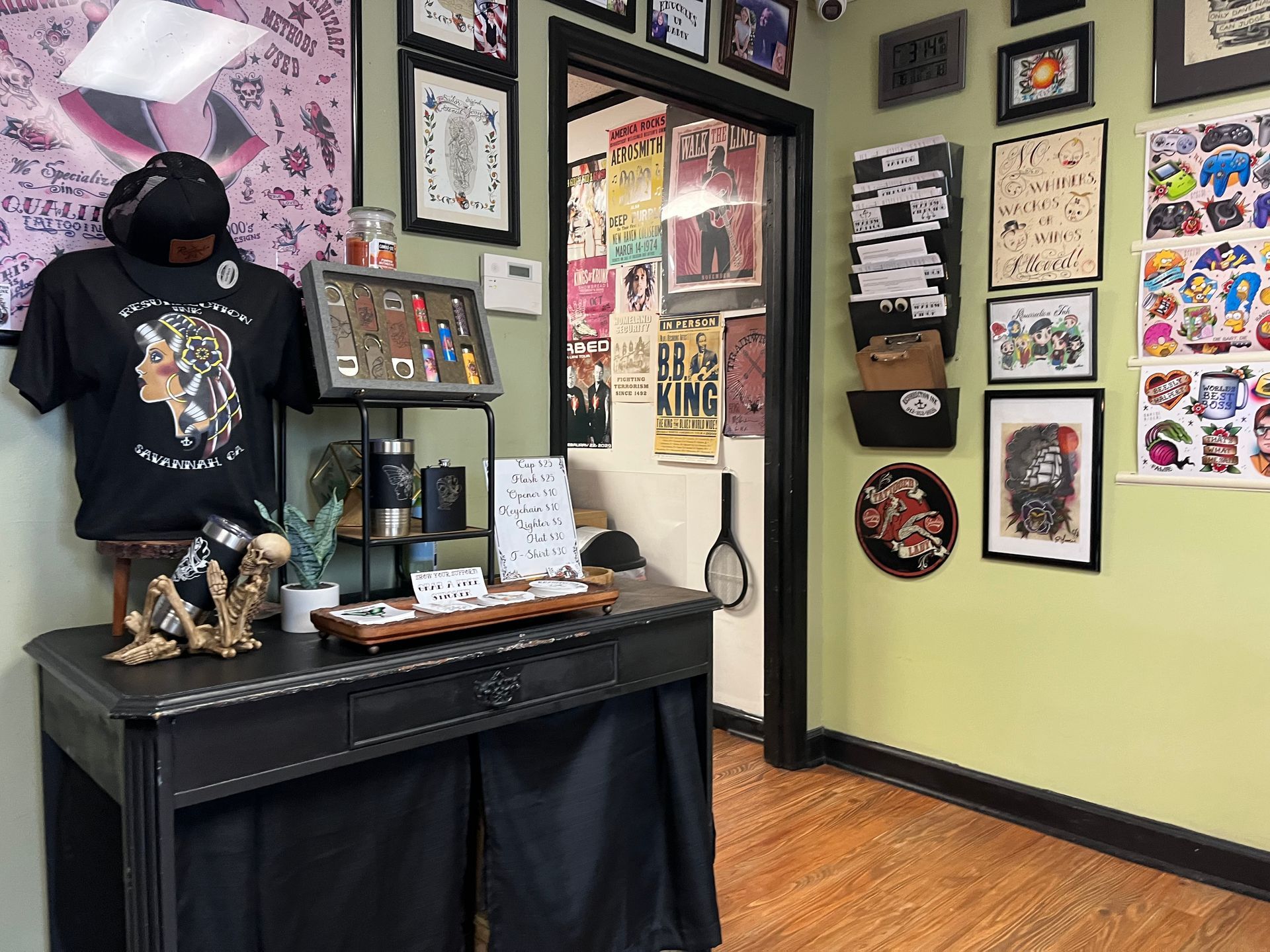 Located at 310 East Montgomery Xrd on the 2nd floor of CrossPointe Shopping Center, Resurrection Ink has been a staple of south Savannah for almost 20 years. Here, we not only strive to meet industry standards of comfort and cleanliness, we exceed them, with four private Tattoo booths and an award winning Piercing Suite.